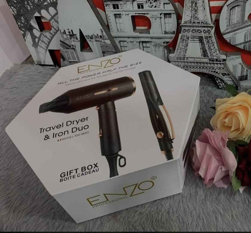 Enzo EN-8893 Professional Travel Dryer & Iron Dou سيت إينزو مجفف + مكواة